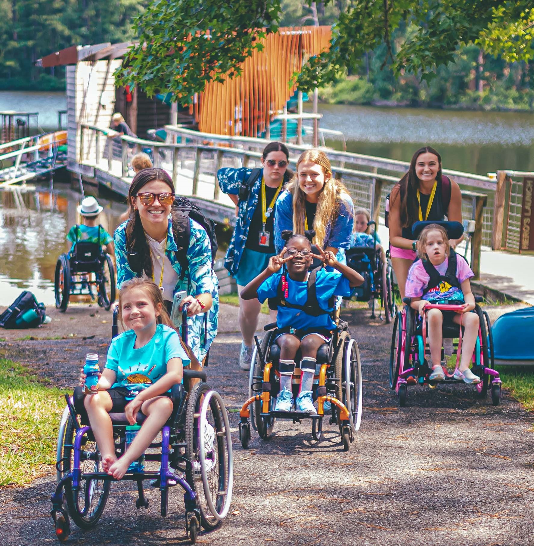 At MedCamps, all campers have one thing in common – a similar mental or physical disability. Whether it be autism; seizure disorders; hearing, speech or vision impairments; cognitive disabilities; or some other challenge, there is a place for each child. On the campgrounds, counselors promote equality, and all differences are set aside so kids can just be kids. Children who would normally have limited opportunities for outdoor activity are able to kayak or fish on the lake, ride horses, experience the thrill of zip lining, shoot with a bow and arrow, and even show off their talents in dancing and karaoke.