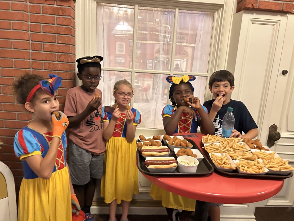 Amid rides, character greetings, and themed shows, all the children exuded such incredible joy. Everything was new and exciting for them. One child, whom I will say has an extremely challenging time with all that he faces daily, announced every single day on the trip that it was the absolute best day of his life. I was moved to tears by how happy and carefree our son seemed for that week. Toward the end of our time in Disney, four of the five children were invited to participate in a Beauty and the Beast play, and they surprised everyone by taking the stage in Belle’s castle like they were born to do it!”