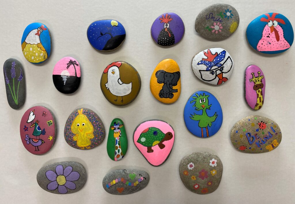 We must give a shout out to our employee artists, Rachel Ovitt, Feed Coordinator and Josh Cannon, Breeder Manager who painted most of the rocks.  It is wonderful to recognize such creative talent among our FLOCK team members.  In addition, this year’s FLOCK Rock Hunt follows a very memorable Easter Egg hunt in Arcadia last April.